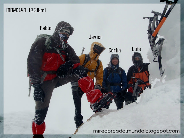 | Moncayo (2.316) invernal con los protagonistas de la ascensión. |